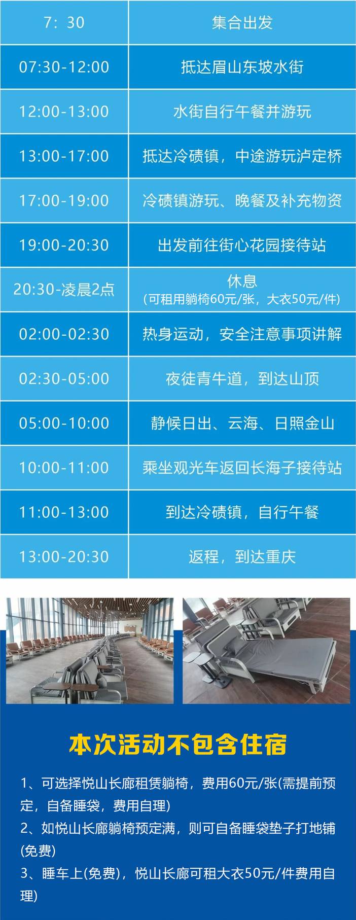 活动出发前一天17:00后及以后取消行程不退费。也可自行找替补出行,不可保留名额用于下次抵扣!敬请理解!