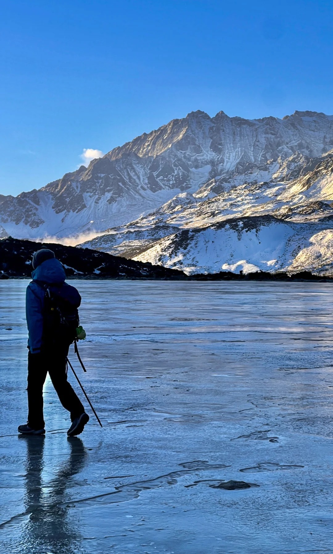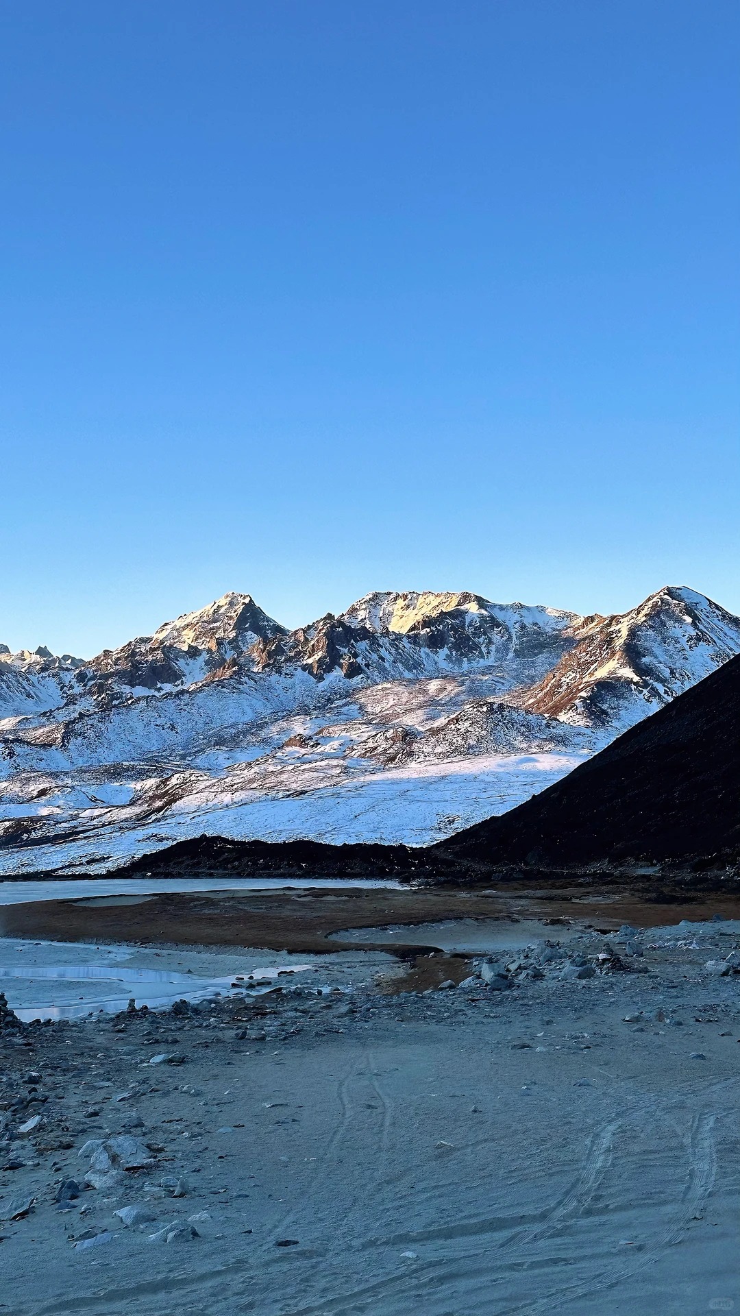 05:15>到达徒步起点(雅家梗附近,海拔约3920米),做简单热身运动后开始徒步。单程6公里,沿途会经过杜鹃林、碎石坡,可近距离观赏田海子主峰,还能看到小贡嘎、雅拉雪山等雪山群。注意保护膝盖,借助登山杖缓慢行走;碎石坡保持安全距离;顺利打卡田海子冰川;