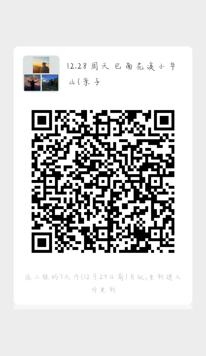 进群流程:搜旅徒户外俱乐部小程序一点我的一点活动订单一点开出行活动订单一点击扫码加入活动微信群,也可以联系客服有山(youshan09)拉进群