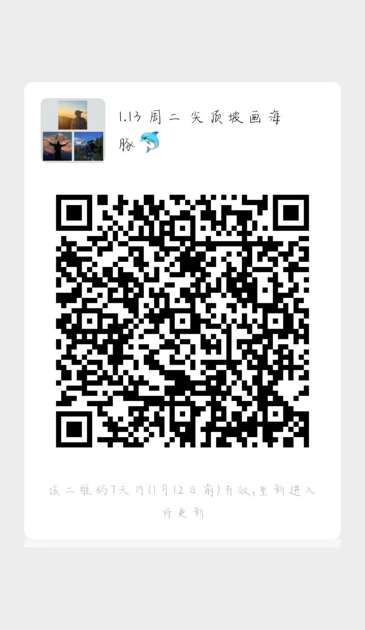 进群流程:搜旅徒户外俱乐部小程序一点我的一点活动订单一点开出行活动订单一点击扫码加入活动微信群,也可以联系客服有山(youshan09)拉进群
