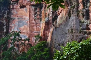 江津大圆洞以原始森林、溪流瀑布、丹霞地貌为主,植被覆盖率超95%,夏季凉爽。徒步距离13公里,爬升500米,初级难度偏上,亲子家庭和对户外感兴趣的朋友均可参加。鞋子防滑为主,穿着符合户外登山。
