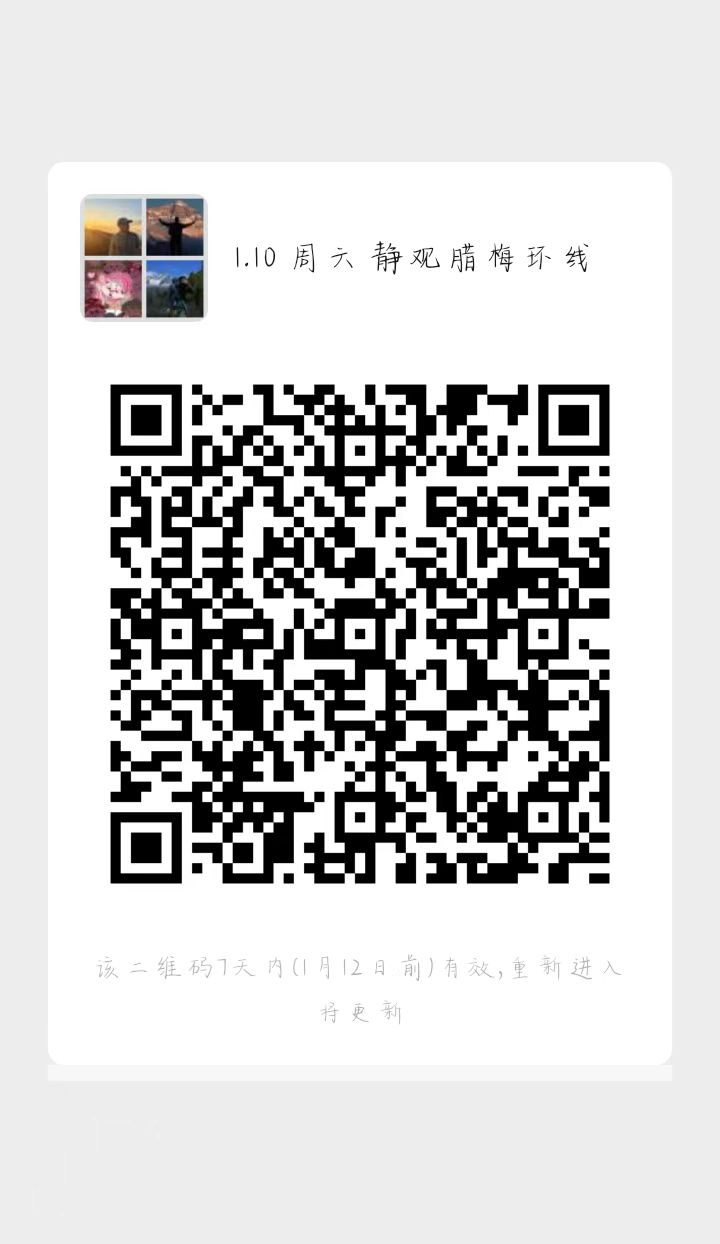 进群流程:搜旅徒户外俱乐部小程序一点我的一点活动订单一点开出行活动订单一点击扫码加入活动微信群,也可以联系客服有山(youshan09)拉进群